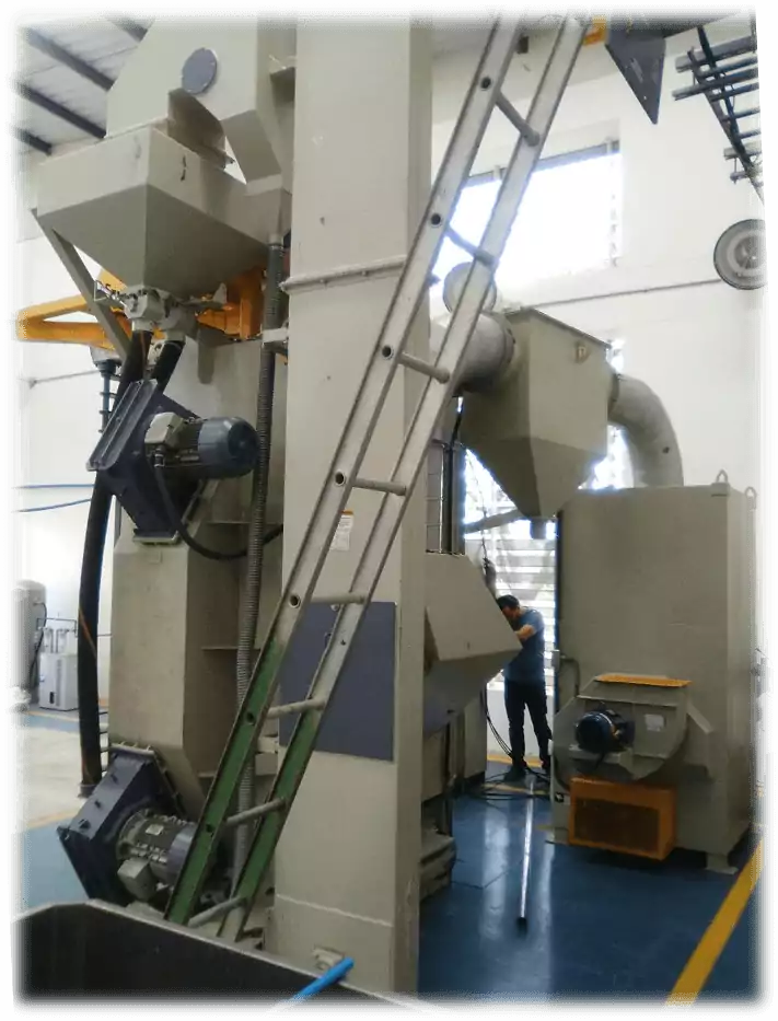 Descripción Máquina Granalladora Turbinada de Ganchos