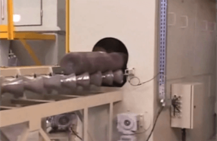Formado por dos ejes (tubos) montados longitudinalmente a la máquina, en paralelo uno con otro y con inclinaciones diferentes. El giro de los ejes es producido por motorreductores controlados por inversores de frecuencia, permitiendo el avance helicoidal de los cilindros. Este sistema garantiza la limpieza y preparación de la superficie total de los cilindros.