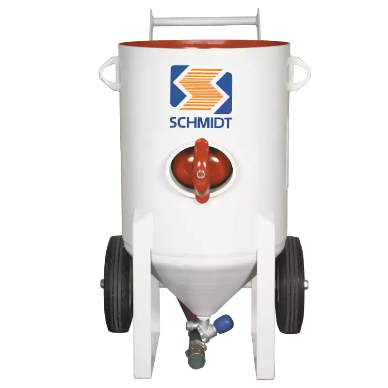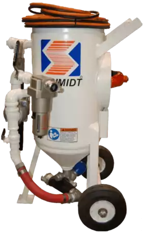 Los sistemas de limpieza de superficie portátiles SCHMIDT® son los caballos de batalla de la industria de chorro de aire abrasivo (Granallado y/o SandBlasting), diseñadas para proporcionar la caída de presión más baja de la industria – menos de 1,5 psi y en algunos casos menos de 1 psi – en comparación de 10 a 14 psi de otros sistemas en el mercado. Es importante tener en cuenta que por cada caída de 1 psi en la boquilla, hay una correspondiente pérdida de 1,5% en la productividad.