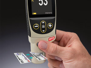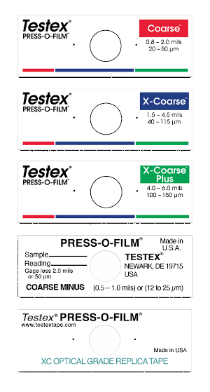 Los lectores de cintas réplica, como el PosiTector RTR H y PosiTector RTR 3D utilizan la cinta réplica Press-O-Film de Testex para medir y registrar los parámetros del perfil de superficie.