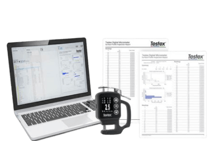 El Micrómetro Digital Testex facilita aún más el uso de la Cinta Replica Testex. Está diseñado a medida para ser la herramienta óptima para medir la cinta réplica, y hace que tomar medidas y crear informes sea más fácil que nunca.