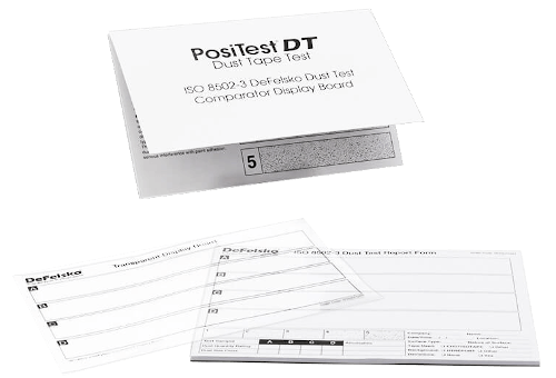 La prueba de cinta PosiTest DT por contaminación por polvo, desarrollado por Defelsko, es un procedimiento de prueba, definido por la norma ISO 8502-3, que se utiliza para evaluar el índice de cantidad y tamaño de polvo en superficies de acero antes de la aplicación de pinturas y revestimientos. El polvo suele estar presente en las superficies de acero después de la limpieza por granallado por residuos remanentes del abrasivo y depósitos del entorno y la atmósfera.