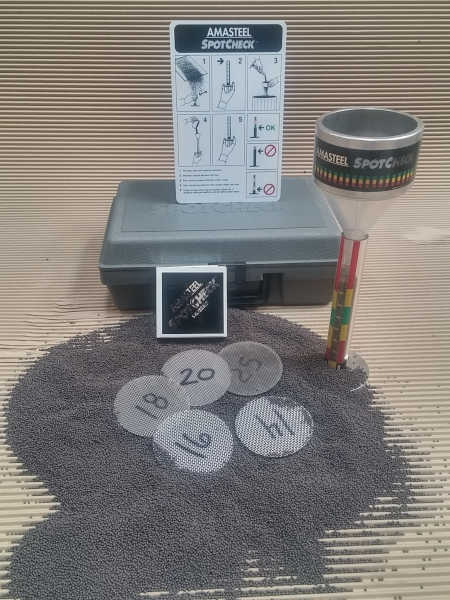 Este kit fácil de usar ayuda a determinar el «equilibrio» de la mezcla de trabajo abrasiva, cada vez que se va volviendo más delgada a lo largo de su vida útil. Nuevas adiciones de abrasivo se determinan por los resultados de las condiciones de la mezcla de trabajo y los ciclos de vida del abrasivo. Este kit le proporcionará la información necesaria para obtener los máximos beneficios de la granalla AMASTEEL y AMACAST.