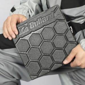 El traje de granallado Bullard está fabricado con un tejido resistente de mezcla de nailon y algodón, con costuras paralelas robustas y refuerzo adicional, que absorbe el sudor en el pecho y la espalda para mejorar la transpirabilidad del flujo de aire y para trabajo pesado, con rodilleras más anchas y flexibles, estos  trajes son muy prácticos para facilitar el trabajo, mejorar la comodidad y prolongar la vida útil del traje.