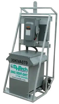 Los transformadores de nuestra flota de alquiler se utilizan para transformar el voltaje de un circuito a otro. En algunos casos, la energía disponible en el sitio es de 240 voltios, mientras que los deshumidificadores requieren 480 voltios. Luego usaríamos un transformador para aumentar el voltaje de la fuente de alimentación de 240 voltios a 480 voltios para hacer funcionar el equipo de manera eficiente.