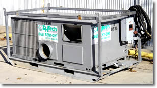 Las unidades de deshumidificación de refrigerante usan refrigerante para enfriar los circuitos por debajo del punto de rocío y, a medida que el aire pasa sobre los circuitos, la humedad se condensa fuera del aire. Este tipo de deshumidificador puede eliminar grandes cantidades de agua del aire en climas cálidos y húmedos y puede usarse para enfriar el interior de tanques, contenedores y recipientes para cumplir con las normas de OSHA.