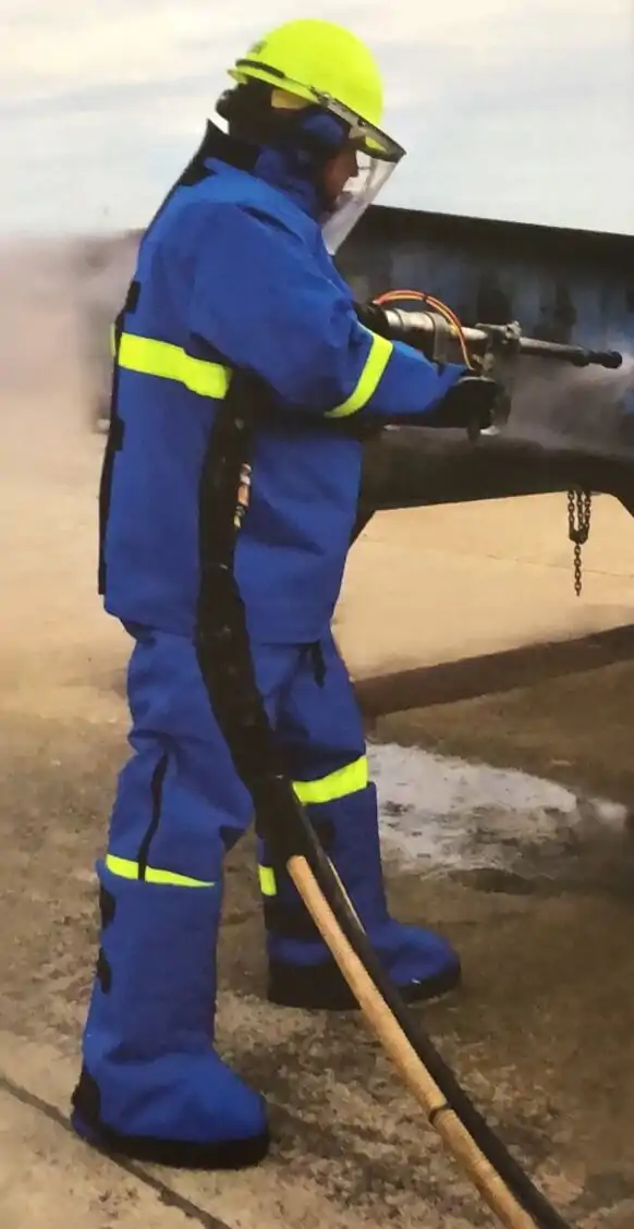 Cuando se usa  correctamente, este traje  puede reducir la gravedad de las lesiones causadas  por una  exposición accidental momentánea (menos de 1/2 segundo) a un chorro de agua. La gravedad de la lesión dependerá de la presión del agua,  el chorro de agua,  la distancia de la boquilla, el tiempo de exposición y el tipo de boquilla. Las aplicaciones de baja presión pueden ser más peligrosas que las de mayor presión debido al mayor caudal de agua.