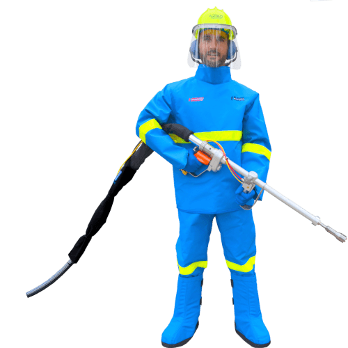 Para mayor seguridad y protección personal, los trajes de protección personal AQUA SAFE SUIT, para procesos con chorro de agua, son fabricados con materiales resistentes al agua a Ultra Alta Presión (UHP), estos trajes proporcionan protección desde la barbilla a los pies, evitando posibles lesiones asociadas en la operación con chorro de agua a presiones de hasta 40.000 psi. El tejido de varias capas, proporciona protección y comodidad, permitiendo el movimiento sin restricciones del operario.
