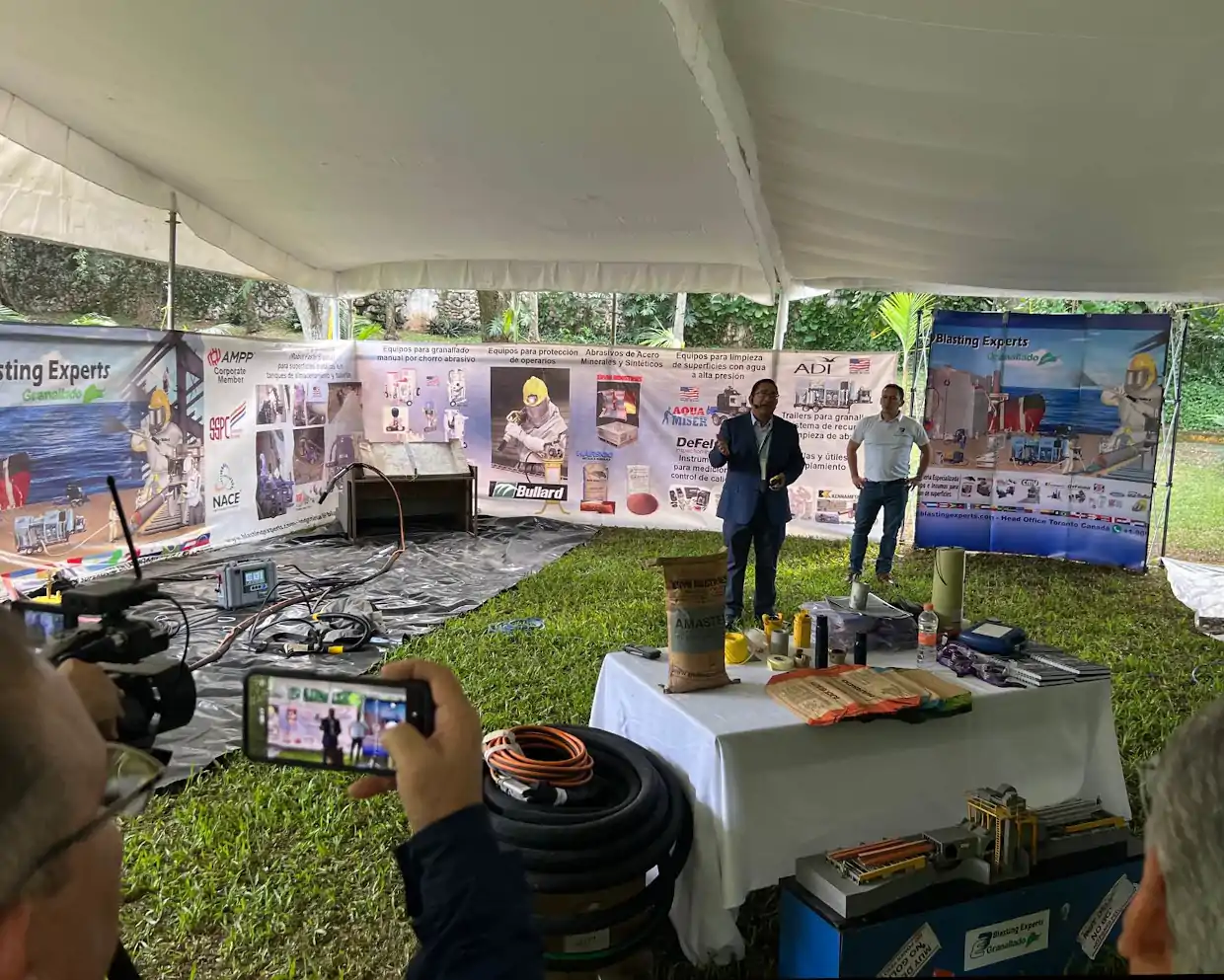 En la demostración en vivo se realizó el proceso de granallado con dos abrasivos (arena y granalla metálica) donde los asistentes observaron las ventajas y desventajas de estos dos productos y en la conferencia se mostró los últimos avances en este campo.