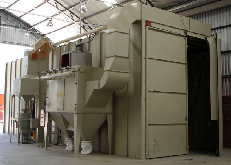 En este sencillo modelo de cuarto de granallado, el abrasivo disparado durante el proceso es barrido manualmente hasta la boca del elevador de cangilones para hacer el respectivo proceso de limpieza y reciclaje, lo que permite reutilizar la granalla ERVIN INDUSTRIES un promedio de 1.300 veces, lo que disminuye considerablemente los costos del proceso. Hemos desarrollado este proyecto como referencia profesional para que Ustedes construyan el suyo en las dimensiones que necesiten y lo doten con elementos de la mayor tecnología en granallado acorde a su presupuesto.